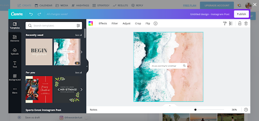 Tip: Find a template you like, add your brand colours, fonts, and photos, and save the design as your Stories template. Next time you need to create one, you don’t need to scroll through all the templates. This makes it super easy to create a post when you’re short on time.