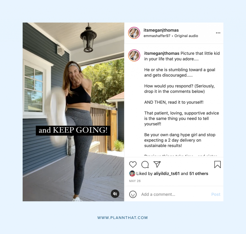 Whether it’s due to time constraints or COVID-19 restrictions, it’s not always possible to get out for a workout. But, as Amy’s account always reminds us — you don’t need to go to a gym to get in an epic sweat sesh! Her mission is virtually helping super busy women get fit with customized at-home workouts, nutrition guidance, and accountability. Her account is a great source of inspiration not only for those who want to get fit but also for those who want to build a profitable online business.