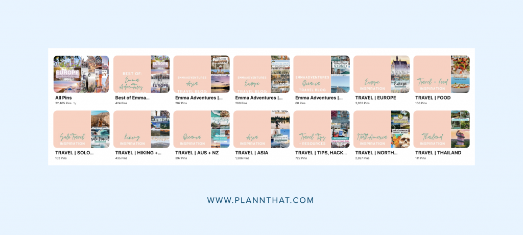 Boards are pages where you can collect and organize your Pins. Pinners can follow Boards and will see new Pins added to them. Think of this like a photo album on Facebook or a Saved Category on Instagram.