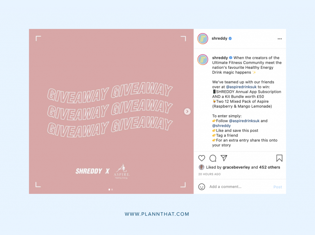 But before you hit ‘publish’ on your giveaway post, make sure the entry rules include asking people to like, share, comment, follow, and tag two friends.