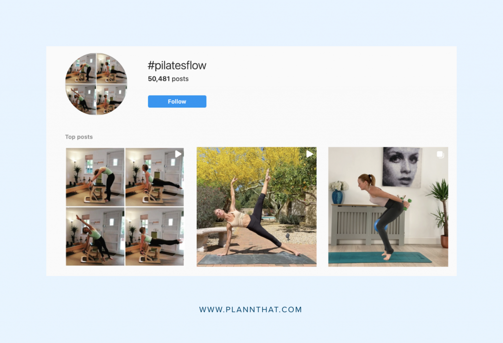 #pilatesflow #pilatesfun and #pilatesfit are much smaller exercise hashtags for Instagram. If you use one of these, it will be much easier to get your content in the ‘top posts’ section and get your content trending on fitness hashtags.